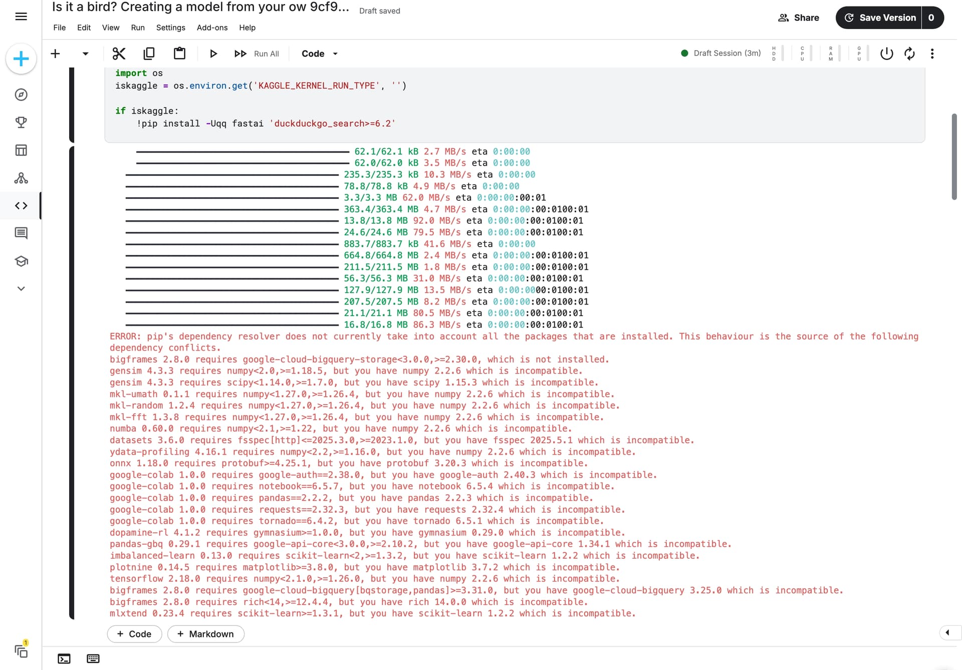 Hi, I’m taking the course in 2025. Whenever I try to install the dependencies, I always get this error on Kaggle Notebook: