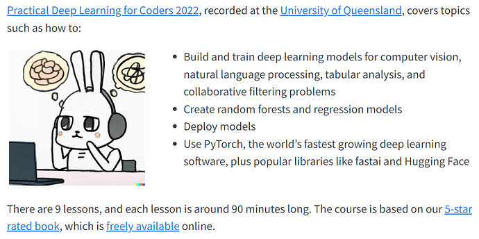 I just started the Deep Learning for Coders with FastAI and PyTorch physical book. For chapter 1 it references a notebook that differentiates between cats and dogs and specifies that the notebook is available on the website (course.fast.ai). The website just redirects me to a notebook that classifies whether a certain image is a bird or not.