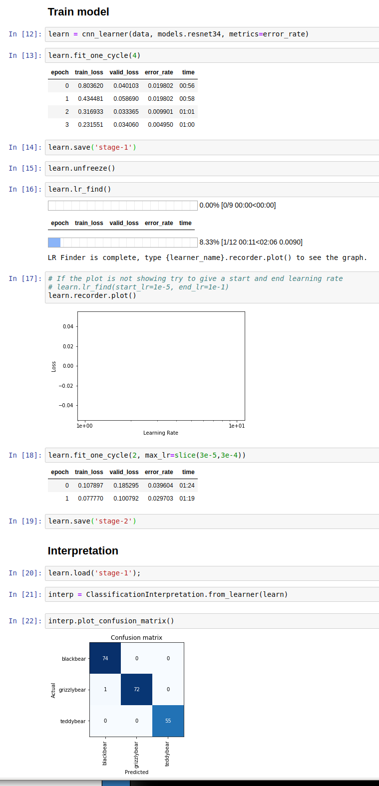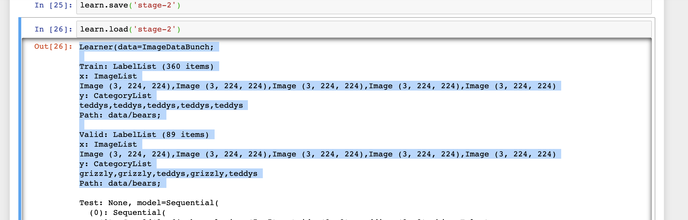 I understand we load it from csv to the db variable. Now this is passed to cnn_learner but why we dont train it again? Why the next line is .load(‘stage-2’)? should we train it beforehand?