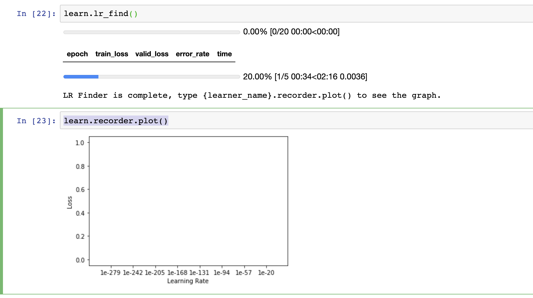 Tried again today. learn.recorder.plot() gave me a blank X and Y without any graph. would appreciate if any one has more insight on this