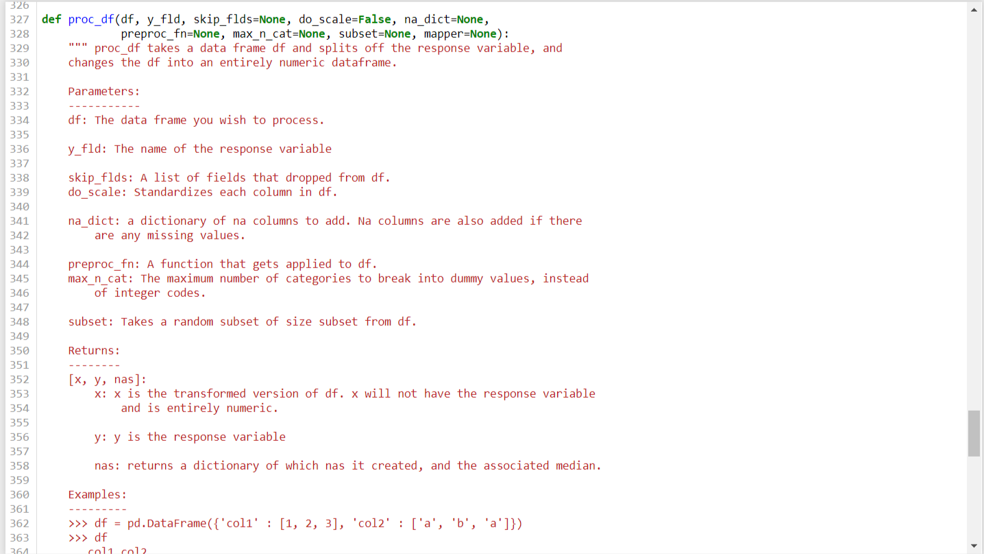 The docstring indicates that three variables are returned, but the Rossman notebook indicates that mapper also needs to be unpacked. If I unpack this function to three variables it returns `ValueError: too many values to unpack (expected 3)’. Does the docstring need to be updated or am I misinterpreting the function?